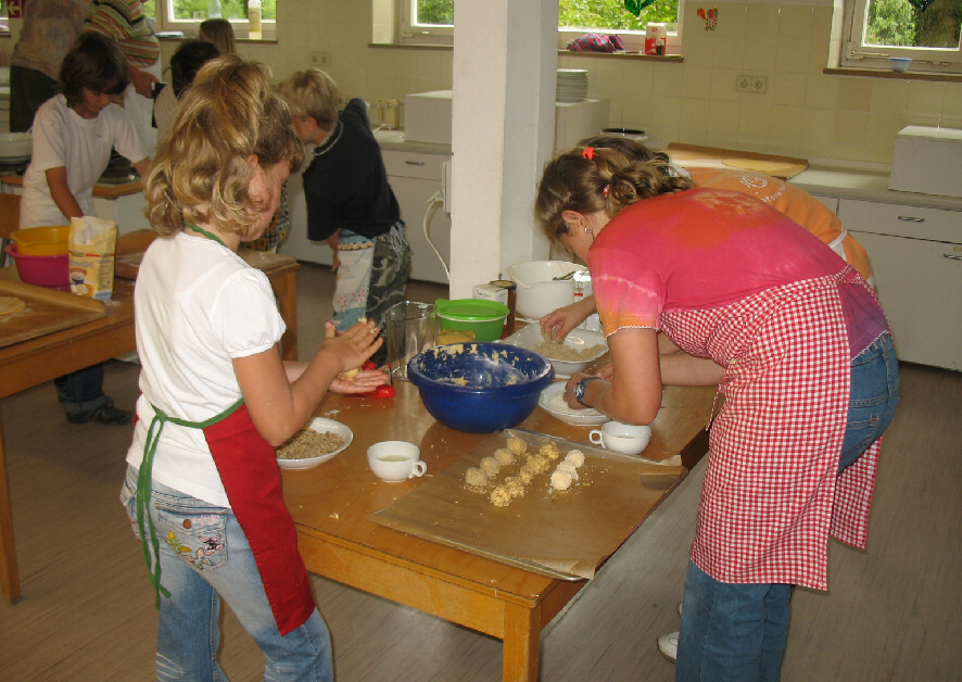 Eileen und Hannelore Pentzlin wogen Mehl für die Hexenkugeln mit Zwetschgen ab. Auch Judit Bredebusch aus Budapest, die mit ihrem deutschen Mann erst seit einigen Monaten in Fellbach lebt und gleich fürs Ferienprogramm engagiert wurde, freute sich schon auf die leckere Nachspeise aus ihrer Heimat mit einem Herz aus Marmelade und einer Schicht Kokosflocken oder Haselnüssen. "Ich finde es eine tolle Sache, dass die Kinder hier probieren können, wie es in Ungarn schmeckt."