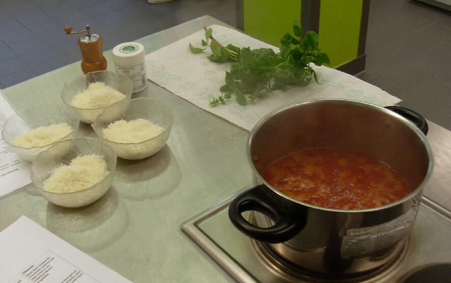 an vier Kochflächen verteilt werden. Jede Kleingruppe erhielt die