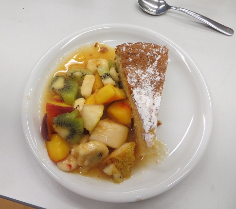 Gateau au jusd d´orange, salade de fruits
