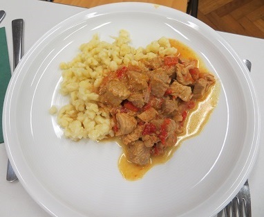 Schweinepörkölt mit Nockerln