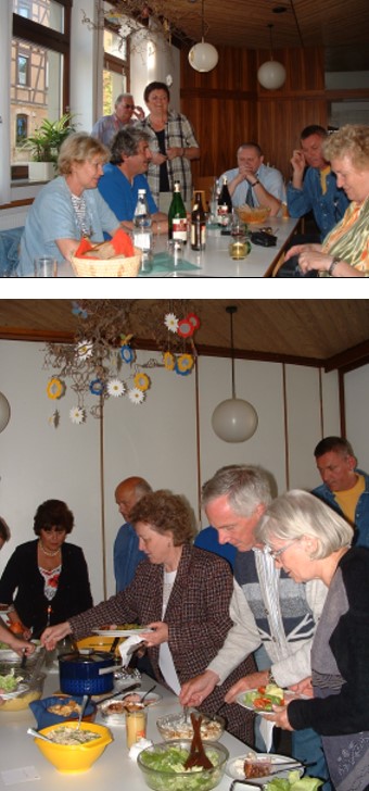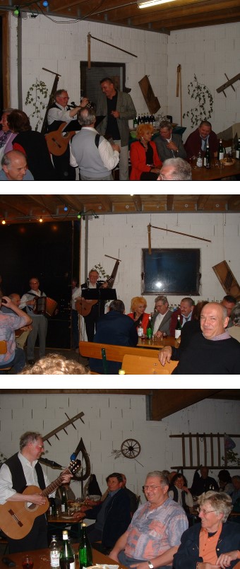 Am Abend traf man sich in der Scheuer des Schimmelhofbesens. Für das leibliche Wohl sorgten Kostproben aus der schwäbischen Küche, für das seelische Wohl gute Gespräche, Musik, Gesang und herzhaftes Lachen.