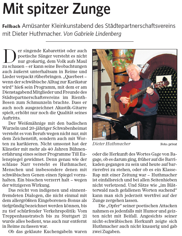 Darüber schrieb die Fellbacher Zeitung am 20. März 2012: