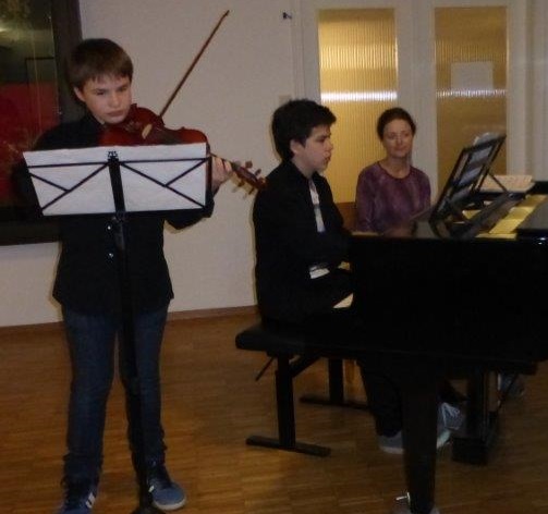 Musikalische Begrüßung durch Jan und Philipp Zales-Reiber und Frau Gurvich am Klavier.
