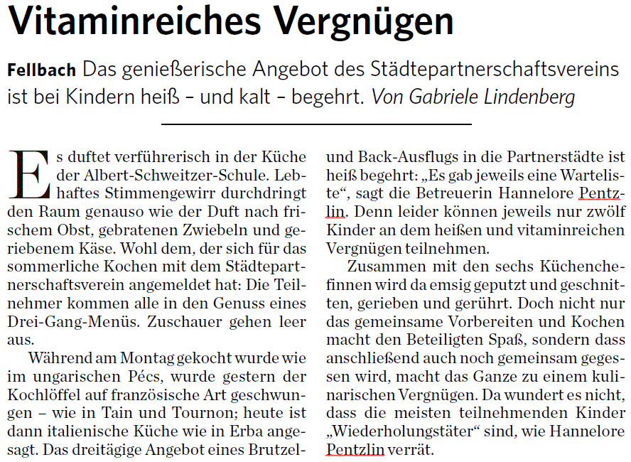 Darüber berichtete die Fellbacher Zeitung am 03. Juni 2015: