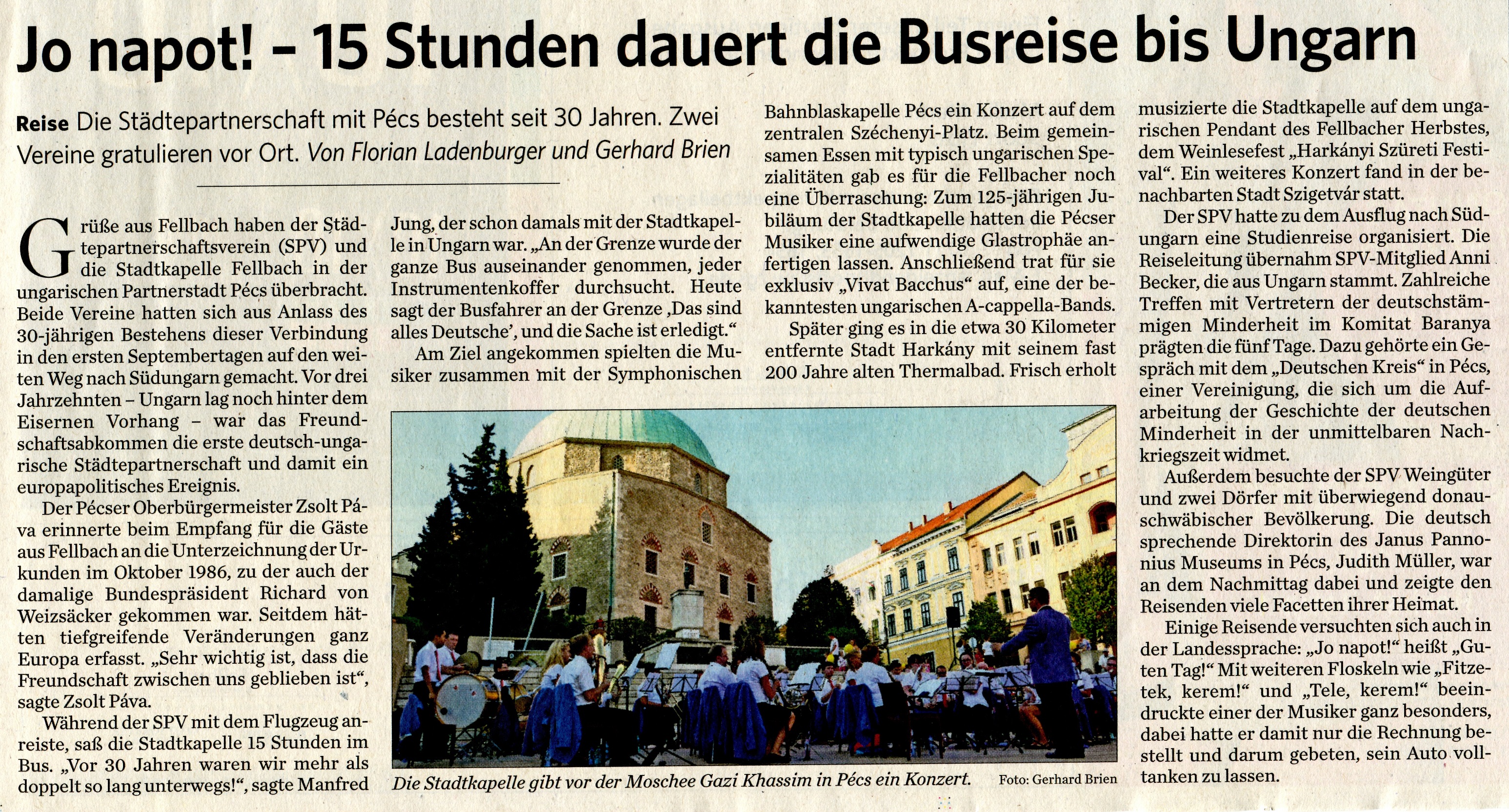 Partnerschaft zwischen Fellbach und Pécs, stand der