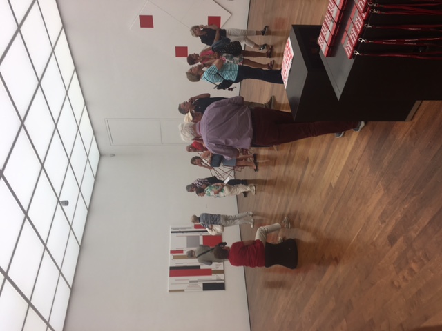 Ausflügler an den Kunst- werken im Museum Ritter sowie an den