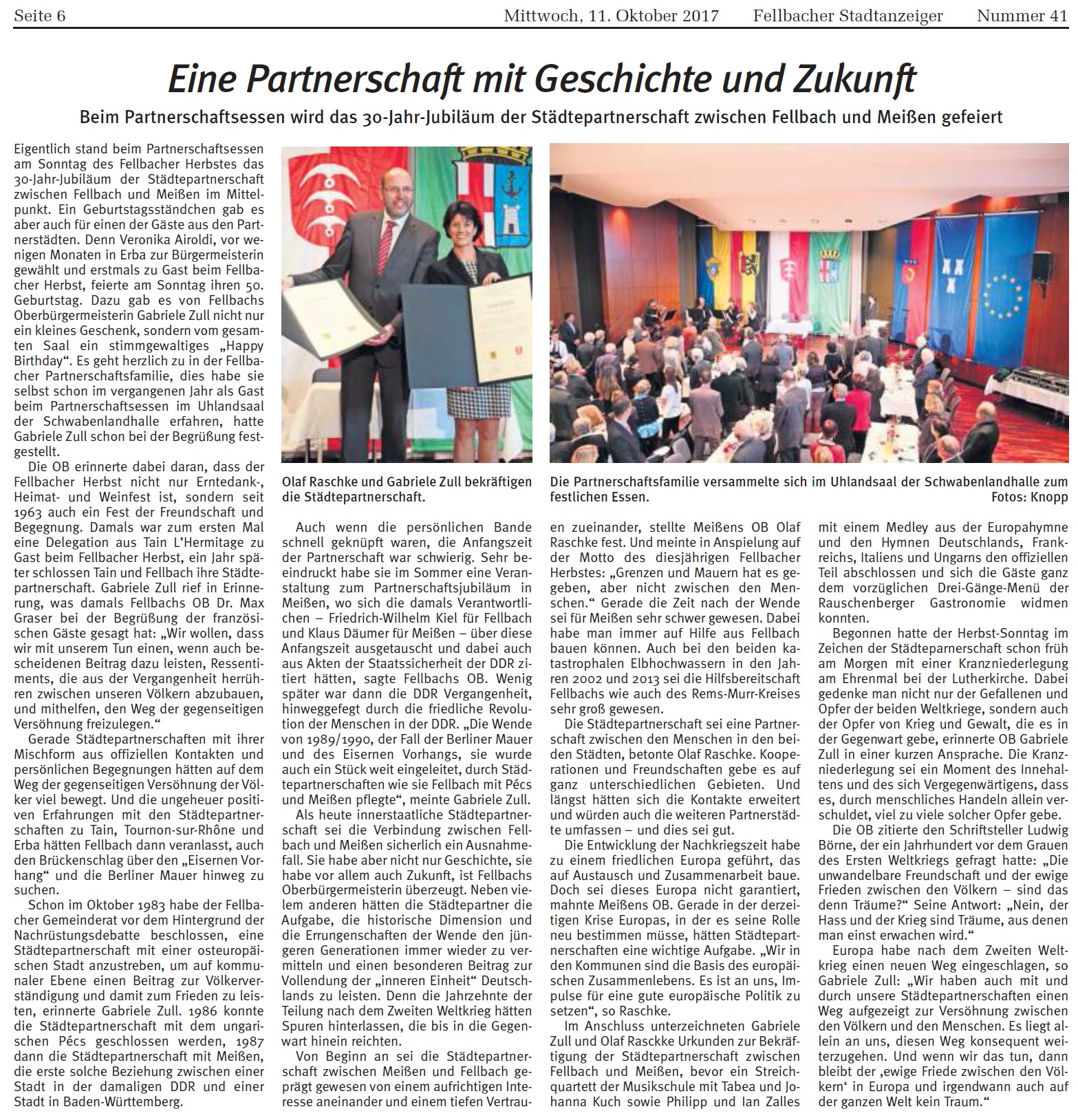 Darüber berichtete die Fellbacher Zeitung am 13.03.2017