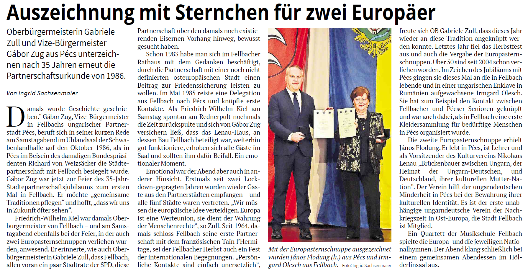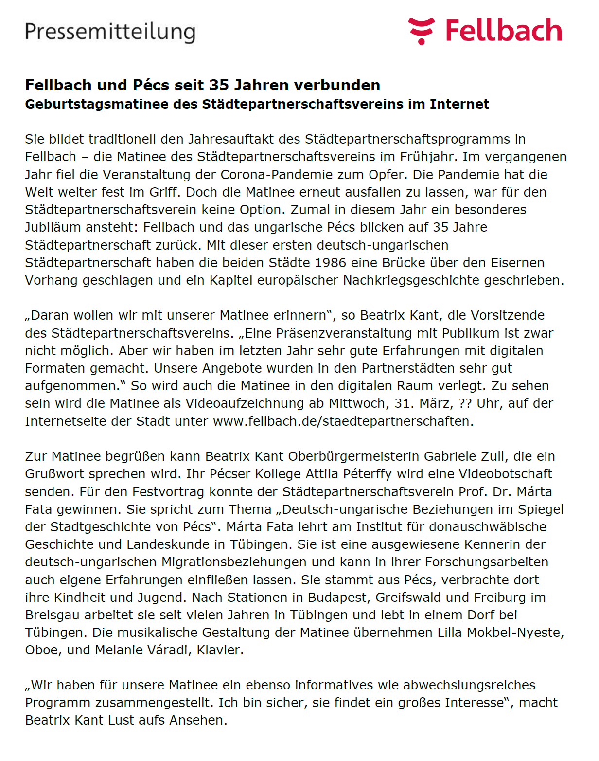 Geschichte Fellbachs. Die Partnerschaft mit Pécs war sogar ein