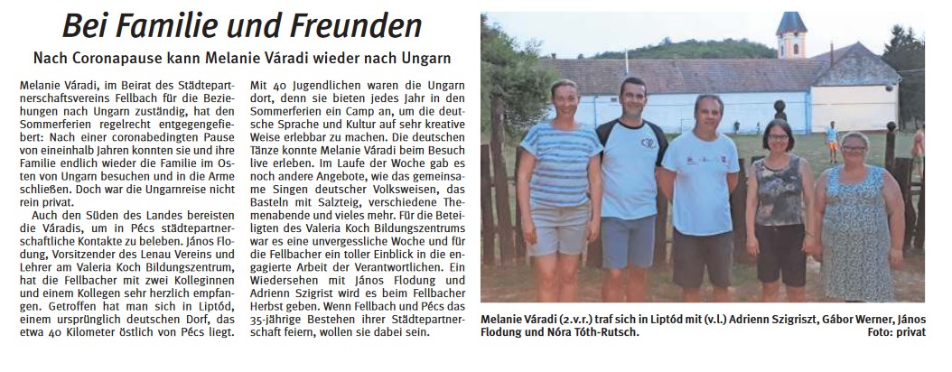 Der Fellbacher Stadtanzeiger brachte diesen Artikel am 8. Sept. 2021